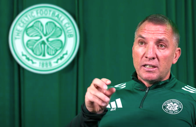 EMBRACE THE CHALLENGES…a defiant Brendan Rodgers looks ahead to the forthcoming hectic fixture list. Image courtesy Celtic TV.