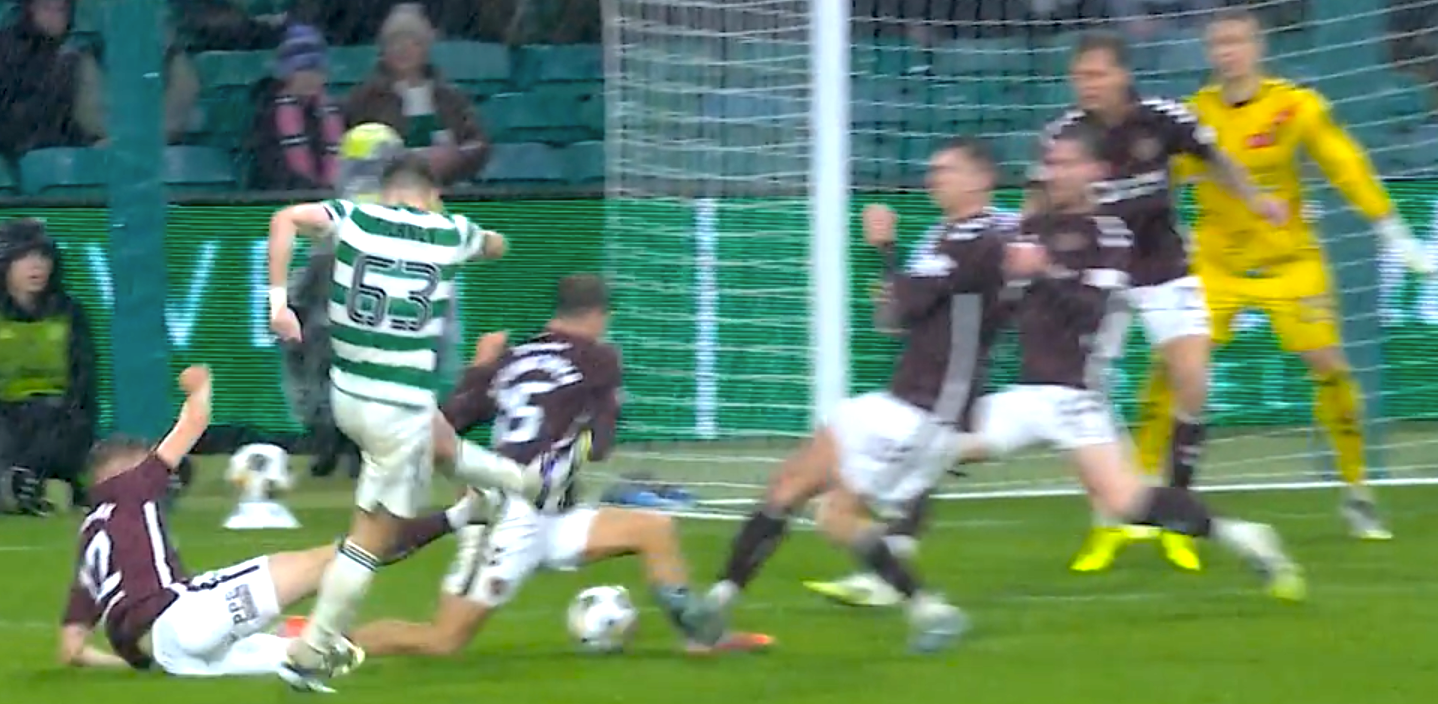While Celtic fumbled in their attempts to find the vital breathrough strike, the Tynecastle side showed them how it was done in the 43rd minute.