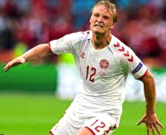 DANISH DANGERMAN…Kasper Dolberg celebrates a goal for his international team.