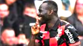 SMILES BETTER…Mohamed Bamba celebrates a goal for Lorient.