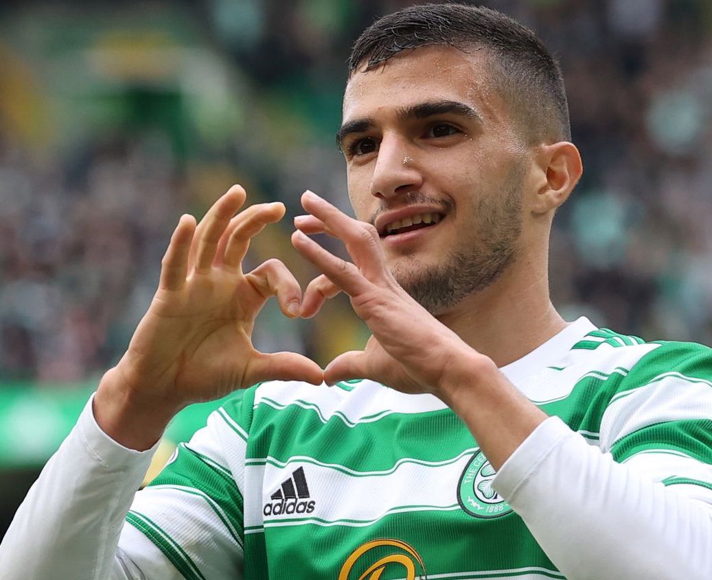 ON TARGET…Liel Abada scored a debut goal in Celtic’s 1-1 draw with FC Midtjylland at Parkhead in July 2021. (See Question 4.)