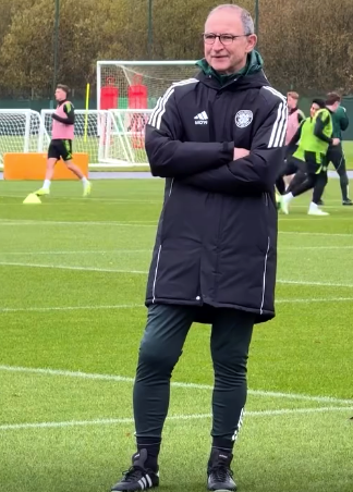 BACK IN THE OLD ROUTINE…Martin O’Neill watches on as Celtic get ready for Sunday’s Premier Sports League Cup semi-final derby encounter at Hampden. Images courtesy Celtic TV.