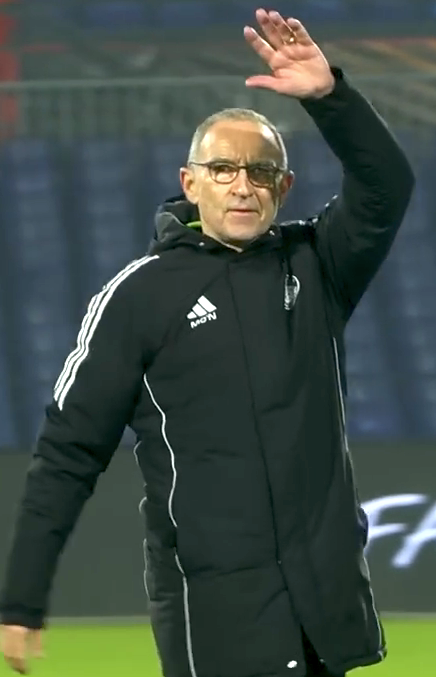 STANDING OVATION… Martin O’Neill acknowledges the Celtic fans after the 3-1 Europa League win over Feyenoord in Rotterdam.