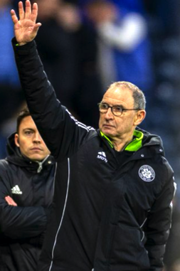 NATIONAL HERO…Martin O’Neill struts his stuff on the Hampden touchline.