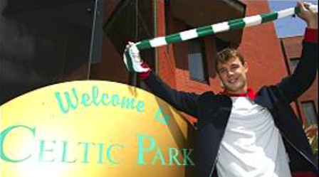 SCARF ACE…new Bhoy David Fernandez arrives at Celtic in 2002.
