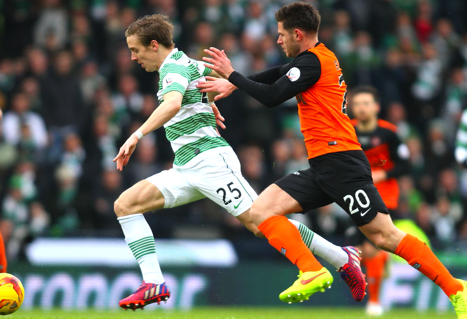 ON THE RUN…Stefan Johansen races clear as he prepares to win his first medal for Celtic in the 2-0 League Cup Final triumph over Dundee United at Hampden on March 15 2015.